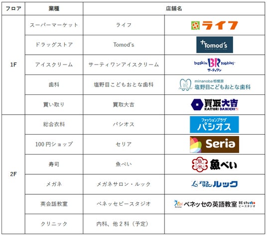 ・ 「暮らしのインフラ」をコンセプトに、食品スーパー「ライフ」やドラッグストア「トモズ」、各種クリニックなど、11店舗が入居。