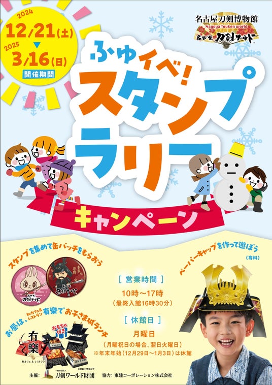 名古屋刀剣ワールドでは、家族みんなで楽しめる冬の特別イベント「ふゆイベ!スタンプラリーキャンペーン」を開催。博物館内に隠されたスタンプを集めると、名古屋刀剣ワールドオリジナルの缶バッチをプレゼント!