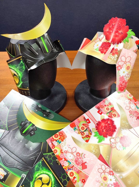 竜の兜や金シャチのペーパーキャップ
