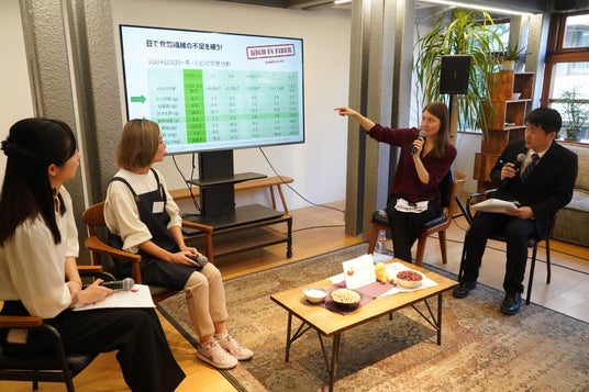 濱村氏は続けて「今日のテーマである『豆×発酵』はそれぞれが持つ栄養価のさらなる相乗効果が得られる食べ方です」、「先程チェルシーさんが教えてくださったとおり豆は非常に栄養価の高い食物で、その豆を発酵させることで、微生物の働きにより栄養価がさらに高くなり、吸収しやすくなります。腸内環境や免疫力の改善をはじめ様々な健康効果もさらに期待できます」と述べました。