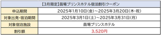 ※2025年4月1日(火)~5月16日(金)出発については、2月中旬頃に商品申込受付・クーポン配布開始となります。具体的な申込受付開始日が決定しましたら、びゅうトラベルサイトにてご案内いたします。申込受付開始時期は変更となる場合がございます。