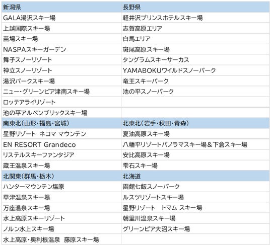 ※取り扱いスキー場は変更になる場合がございます。予めご了承ください