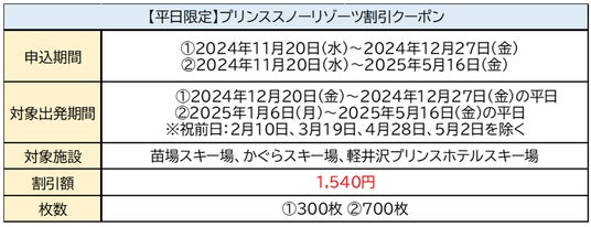 ・JR SKISKIクーポン、プリンスホテル・プリンススノーリゾーツ割引クーポン