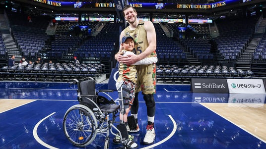 12月15日(日)秋田ノーザンハピネッツ戦の試合後に、#45 ジャック・クーリー選手が公益財団法人メイク・ア・ウィッシュ オブ ジャパンを通じ、沖縄県在住の島羽功(しま わくう)くん・10歳の夢をかなえるお手伝いをしました。