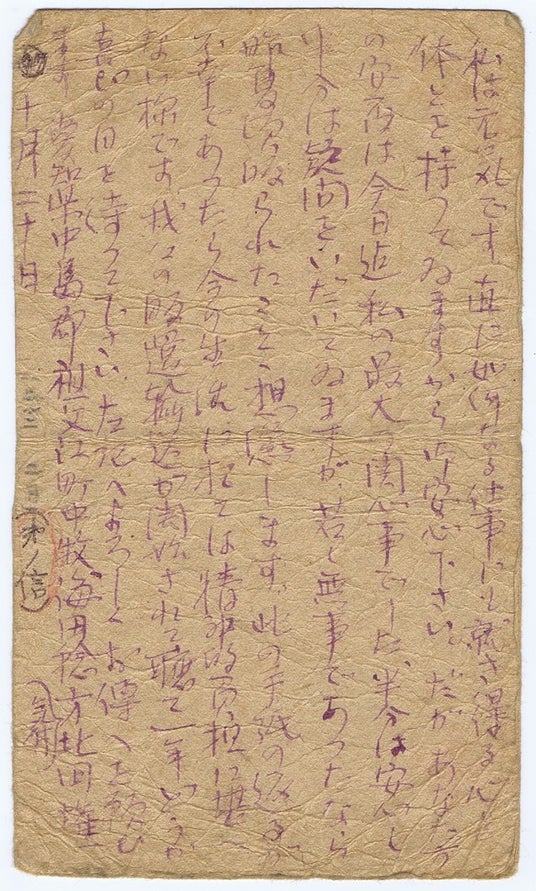 日本からの葉書には、夫・父の早期の帰還と、何よりも無事であることを願い続ける家族の想いが書かれており、家族愛と夫婦愛の深さが読む人の心を打ちます。