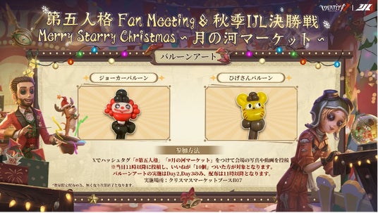 第五人格FanMeeting&秋季IJL決勝戦「MerryStarryChristmas~月の河マーケット~」ついに開催まであと1日!復習シリーズ連載第5弾風船使いたけむぅ~によるバルーンアート企画!