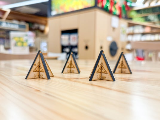 kiondロゴの入ったオリジナル木工作キットをプレゼント!ご自宅に持ち帰ってできます。ご希望の方は完成品を店頭に飾ったり、完成品をカプセルに戻して誰かにプレゼントすることも。