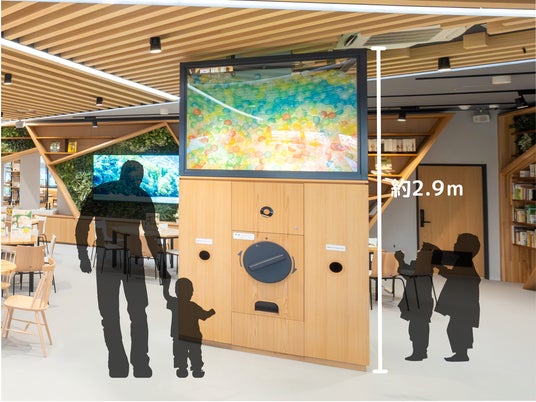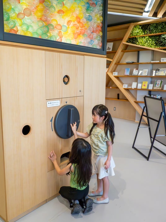 木育施設として内装を「木製」にこだわってることや、アミューズメント施設を運営するカーゾックの"遊び心"を表現したのが、この巨大な木製カプセルトイです。子どもも大人もみんながワクワクする「カプセルトイ」を「巨大化」させることで、多くの方の笑顔や元気が集まる場所となることを期待したシンボルが誕生しました。