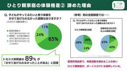 これまで支援をお届けしたご家庭へのアンケートの結果、89%の方が子どもがやりたいと思う体験をさせてあげることができなかったと回答しています。