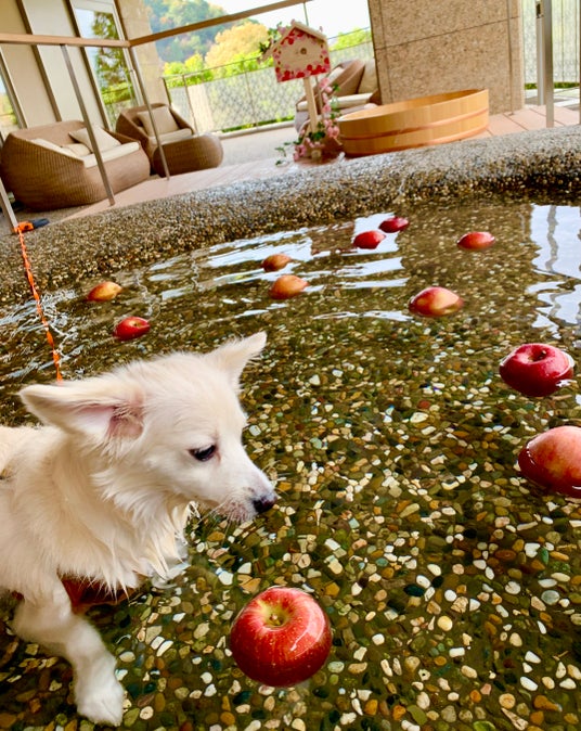 夏の「愛犬流しそうめん」、秋の「愛犬バラ風呂」に続いて今年の冬は「愛犬りんご風呂」でわんちゃんと愛犬家のみなさまの心に残る甘酸っぱく鮮やかな思い出づくりをお手伝いいたします。