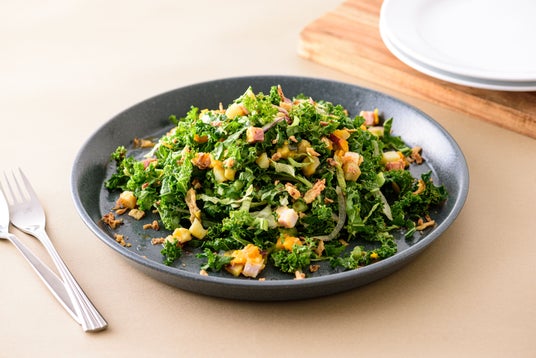 「スーパーフード」のケールを贅沢に味わう栄養価が高くスーパーフードと呼ばれるケールに、食感が楽しい加熱済みの根菜やベーコンを合わせました。甘じょっぱさがやみつきになる、はちみつマスタードドレッシングをかけてお召し上がりください。