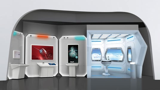「フライングオペレーションユニット(空飛ぶ手術室)」と、遠隔治療に当たる「リモートオペレーションセンター」から成る展示で、「未来の医療」のあり方を提案。