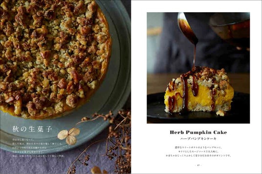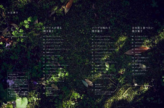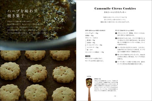 はじめに/材料について/ハーブとスパイスについて/基本のクッキー生地の作り方/スパイスが香る焼き菓子/秋の生菓子〈ハーブパンプキンケーキ〉/冬の生菓子〈スパイスチョコタルト〉/ハーブを味わう焼き菓子/春の生菓子〈カモミールケーキ 〉/夏の生菓子〈ローズヒップとハイビスカス寒天 ビーガンアイスクリーム添え〉/日本茶と楽しむ焼き菓子