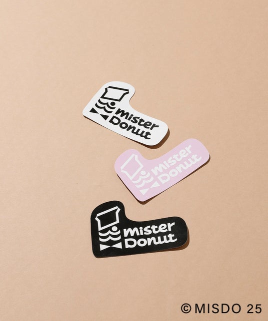 シンプルなミスタードーナツのロゴのステッカー。スマートフォンの裏に挟んだり、手帳などに貼ったりなどアレンジをして楽しめます。