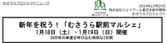 2025年1月18日(土)・19日(日)の2日間、新年を祝う!「むさうら駅前マルシェ」を開催