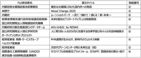 以下の各府省庁の展示が、フューチャーライフヴィレッジ内でそれぞれ行われる予定となっており、「未来の暮らし」に関わる問い・提案として、 来場者たちに発信されます。