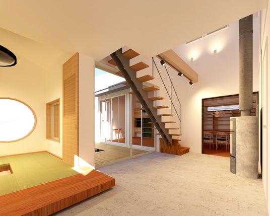 「中庭を囲む家」土間イメージパース