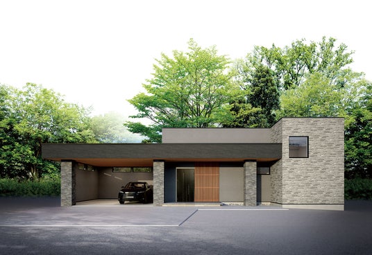 ダイナミックな庇のあるビルトインガレージが、上品なたたずまいの邸宅を演出。扉を開けると、重厚感のある外観とは一変し、広く開放的なリビング・ダイニングが広がります。リビングの先にはアウトサイドリビングがあり、プライベートガーデンへと繋がります。自由設計だからこそ実現した、細部までこだわりの詰まったデザイン。石や木、塗壁や漆など、多様な素材の表情と、職人たちの手仕事による美しい仕上がりが魅力です。性能面においても検討を重ね、「全館空調」を採用。段差を極力減らし、家事動線を入念に計画することで、日々の暮らしやすさにも配慮しました。一年を通して心地よく、長く快適に暮らせる住まいです。