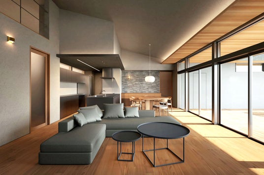 SE構法ならではの大空間リビングは、高い天井と大きな窓がさらに広がりを感じさせ、家族がのんびりと、楽しく過ごせる理想の住まいを実現しました。