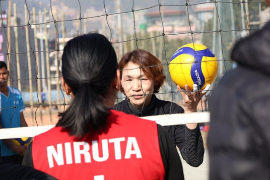 今回、その活動の一環として、オリンピック出場経験のある元バレーボール女子日本代表の永田和美さん(旧姓:中村)を講師に迎え、ネパールにて、現地の選手たちを対象に、バレーボールクリニックを行いました。