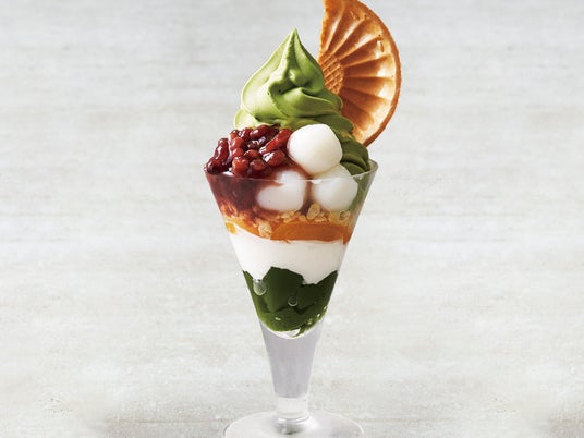 伊右衛門の抹茶パフェ(あずき白玉)風味豊かな宇治抹茶を使用した伊右衛門カフェのソフトクリームパフェ。卵や牛乳などの動物性食材を一切使用しない100%植物性のヴィーガンソイクリームもお楽しみいただけます。