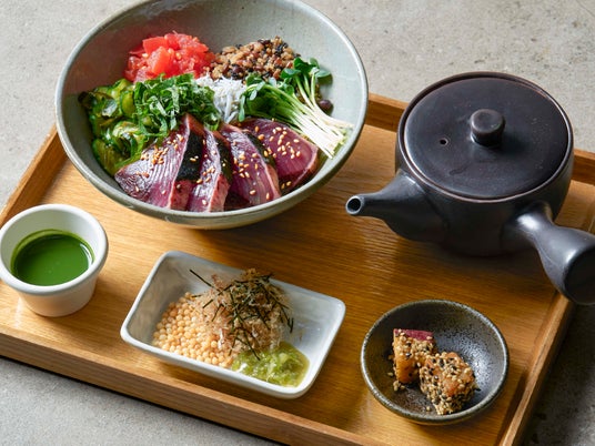 伊右衛門の抹茶漬け(鰹のたたきと佂揚げしらすの抹茶漬け)(税込¥1,793)