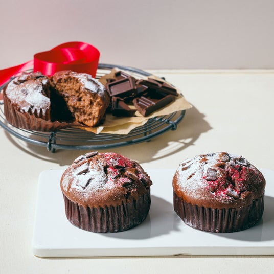 チョコ生地に、食感の残るダイスチョコをのせ、仕上げにまろやかでコクのあるガナッシュを注入しました。ほのかな酸味がチョコの甘みを引き立てる赤いラズベリーパウダーと粉糖をトッピングしました。