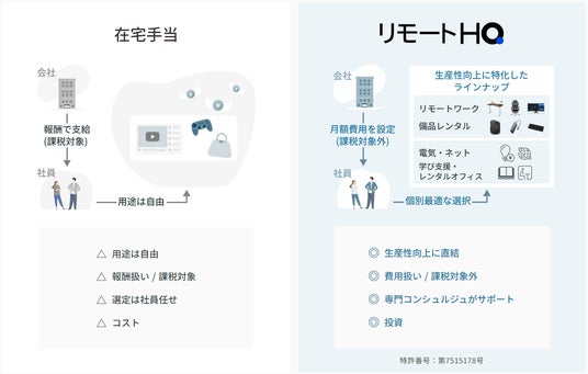 「リモートHQ」は、リモートワークを導入する企業が、社員一人ひとりにとって最適なリモートワーク環境を整備できる、これまでにないサービスです。
