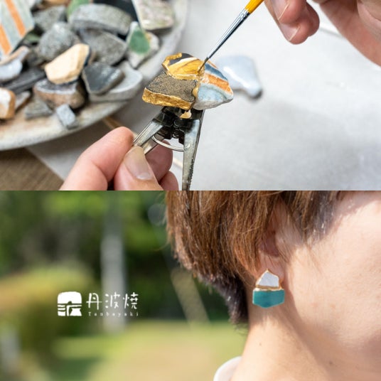 窯元手作りの陶器からできた丹波焼ガラメン(焼成後、ひびなどで商品にならなかった丹波焼を割ったかけら)や木工を組み合わせ、金継ぎを施したオリジナルのアクセサリーを製作。また自身の丹波地域への移住経験から、観光や移住情報をInstagram(@iwata-style)にて発信。