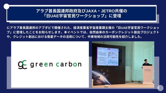 Green Carbon株式会社は、アラブ首長国連邦政府及びJAXA・JETRO共催の「日UAE宇宙官民ワークショップ」に登壇 中東地域のカーボンクレジット市場開拓を開始