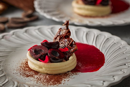 グリオットとナッツのショコラムースのパブロヴァ