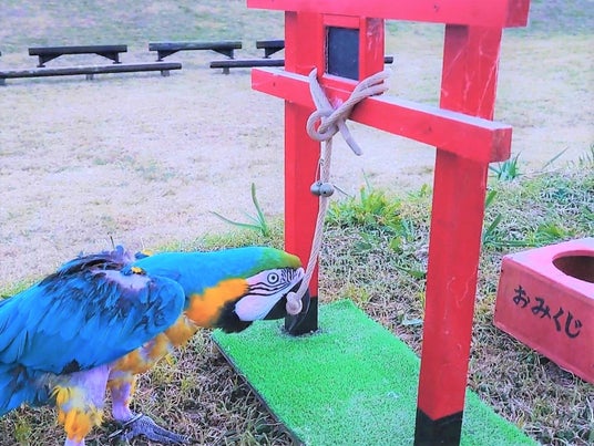 インコが2025年の運勢を占います!インコがミニ神社で鐘を鳴らしておみくじを引いてくれます。