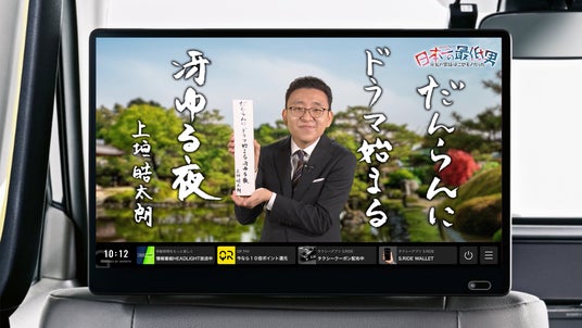 モビリティプラットフォーム事業を展開する株式会社ニューステクノロジーとタクシーアプリ 「S.RIDE(R)(エスライド)」を提供するS.RIDE株式会社は、両社が運営する日本初のモビリティ車窓メディア「THE TOKYO MOBILITY GALLERY Canvas」(以下「Canvas(キャンバス))を活用し、2025年1月6日(月)~2025年1月19日(日)の期間限定で、1月9日(木)夜10時より放送予定のフジテレビの新ドラマ『日本一の最低男 ※私の家族はニセモノだった』とのコラボタクシーが走行することをお知らせします。本タクシーは、タクシーアプリ「S.RIDE」で指定配車が可能です。