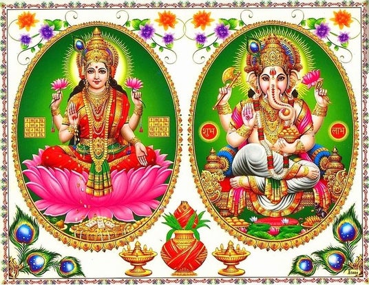 Lakshmi Ji、Ganesha Jiはインドの神話に伝わる神様です。Jiとは親しみと敬意を持って、名前の後に付けれる敬称です。