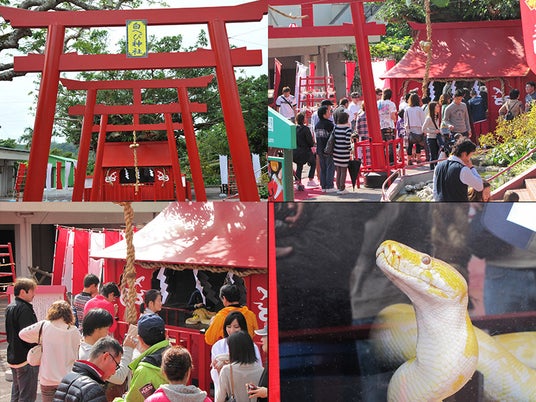 12年に一度!ヘビ年だけに登場する「白へび神社」。ご神体は生きている大きな白ヘビ様です。