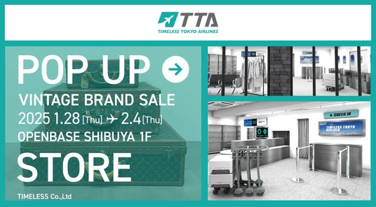 総合リユースサービス(オークション・総合買取サロン・古物商プラットフォーム)を展開する、株式会社タイムレス(本社:東京都港区、代表取締役社長:馬場 浩太)は、この度、東京都渋谷区宇田川町に、1月28日(火)から8日間の期間限定でブランドリユース商品を販売する「TIMELESS TOKYO」のポップアップ店舗をオープンすることが決定いたしました。