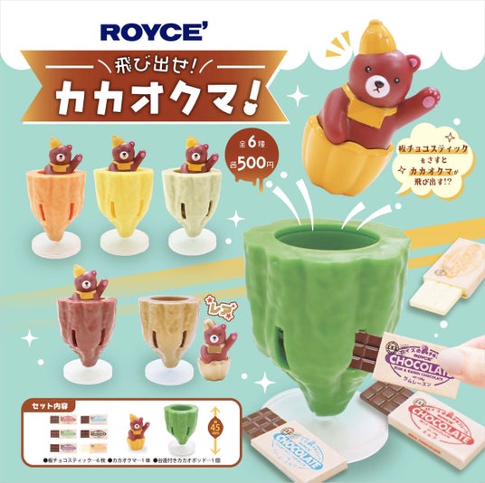 株式会社ロイズコンフェクト(北海道札幌市)は、2024年12月26日より当別町にあるロイズカカオ&チョコレートタウン及び隣接するロイズタウン工場直売店の2箇所限定で、カプセルトイ「飛び出せ!カカオクマ!」を新発売いたしました。体験型施設「ロイズカカオ&チョコレートタウン」のマスコットである“カカオクマ”が入ったカカオポッドに、小さな板チョコスティックを差し込むとカカオクマが飛び出す、楽しいカプセルトイです。