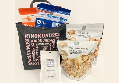 ランチバッグ、スライドジッパーバッグS、スライドジッパーバッグM、ラー油せんべい、青じそいかせんべい、ブルーベリー飴 紀ノ国屋おすすめがギュギュっと詰まった福袋。