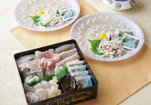 (18×18×5cm×1段・直径19cm×2皿/3人用)とらふぐ(てっちり用3人前、てっさ3人前)