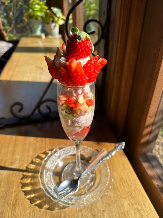 素敵なガーデンに囲まれたおしゃれなカフェでいただく、とっておきのいちごパフェ