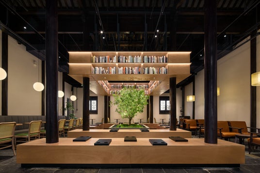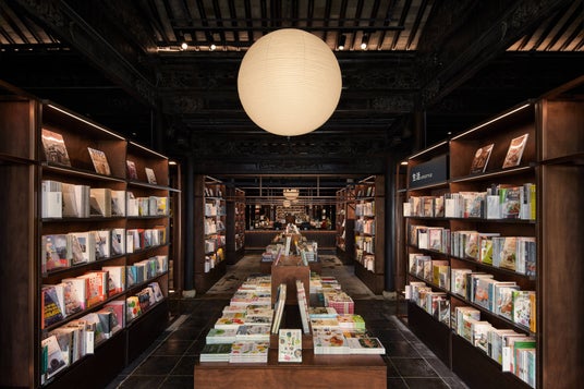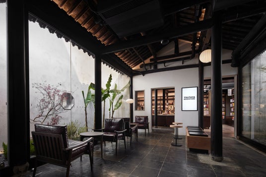 「TSUTAYA BOOKSTORE 無錫恵山映月里店」のコンセプトは「文化の旅」。中国国家5A級観光地*に初めて出店するTSUTAYA BOOKSTOREとして、古い町並みを残す水の都である江南水郷と現代商業の特徴を巧みに融合させています。店舗は清朝時代の祠堂の旧跡に位置しており、歴史的な文化を継承した店内に書籍や文具・雑貨の売り場、カフェを設けて、古典建築に新たな機能を与えています。