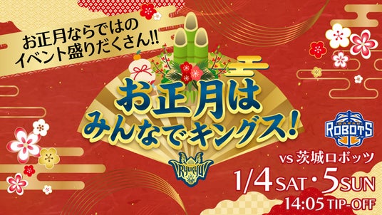 1月4日(土),1月5日(日)茨城ロボッツ戦は「お正月はみんなでキングス!」新年にふさわしい様々なイベントを開催します。キングスと一緒に沖縄アリーナで楽しいお正月を過ごしましょう!