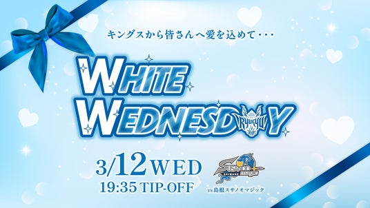3月12日(水)島根スサノオマジック戦は、「WHITE WEDNESDAY」!キングスから、ご来場の皆さまへ愛を込めて素敵な思い出をプレゼントいたします!