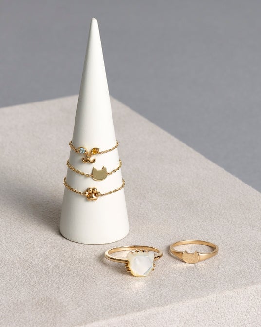 艶やかな地金のリングはコーディネートに馴染みやすく、大切なねこをいつも身近に感じられそう。