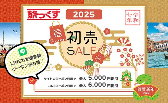 日ごろの感謝を込めて、旅っくすの海外旅行がお得になる初売りセールクーポンコードを配布いたします。メルマガ会員・LINEお友だちになるとさらにお得なクーポンもGETできます!