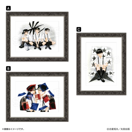 古屋兎丸氏が本イベントのために描き下ろしたイラストの高精細複製原画(3種)を受注生産にて販売いたします。複製原画は額装まで施した状態でお届けいたします。