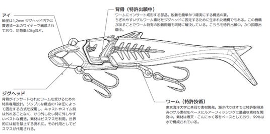 内容:本体(ジグヘッド+ワームのセット)+ 予備ワーム1本