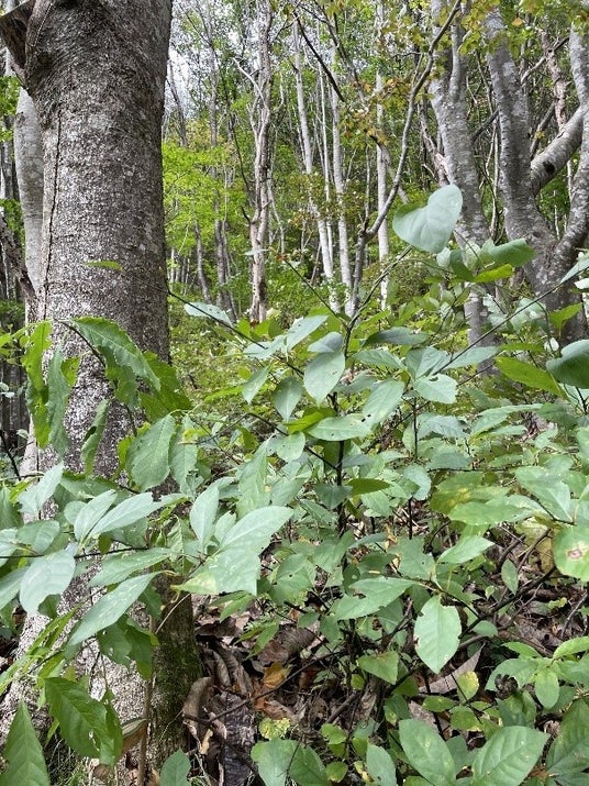 自然豊かな山形県置賜地域の山林と自生するクロモジ”