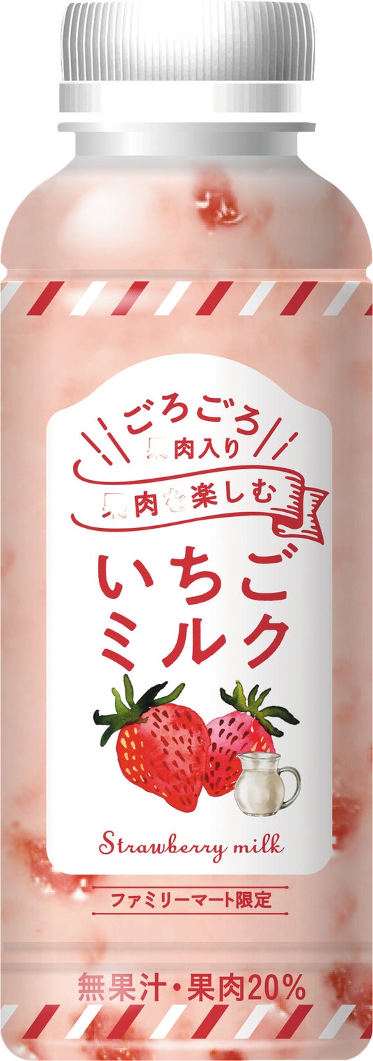 【内容】累計販売数4,900万本を突破した定番人気商品のいちごミルクです。56万本限定で果肉を増量したいちごミルクを楽しめます。