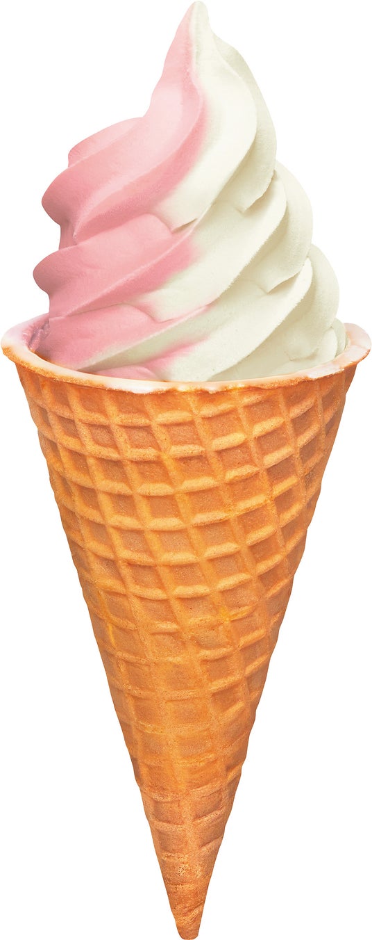 【内容】いちごアイスと練乳アイスの2色巻きのワッフルコーンアイスです。いちご果汁を30%配合(製品中15%)して甘ずっぱさを表現したいちごアイスに、ミルクの風味が味わえる練乳アイスを相性抜群に仕立てました。サクサクのコーンは小麦粉の一部に全粒粉を使用し、香ばしい風味を楽しめます。※数量限定